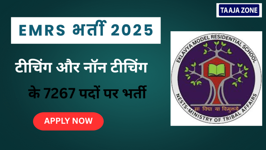 EMRS भर्ती 2025: 7267 Post नोटिफिकेशन जारी, टीचिंग और नॉन टीचिंग, ऑनलाइन आवेदन प्रक्रिया शुरू – पूरी जानकारी