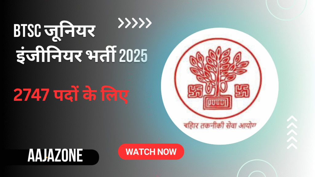 बिहार तकनीकी सेवा आयोग (BTSC) ने जूनियर इंजीनियर (JE) के पदों पर बंपर भर्ती के लिए एक आधिकारिक अधिसूचना जारी की है। इस भर्ती अभियान के माध्यम से सिविल, मैकेनिकल और इलेक्ट्रिकल सहित विभिन्न ट्रेडों में कुल 2747 रिक्तियों को भरा जाएगा। बिहार में सरकारी इंजीनियरिंग नौकरी की तलाश कर रहे डिप्लोमा धारकों के लिए यह एक सुनहरा अवसर है।